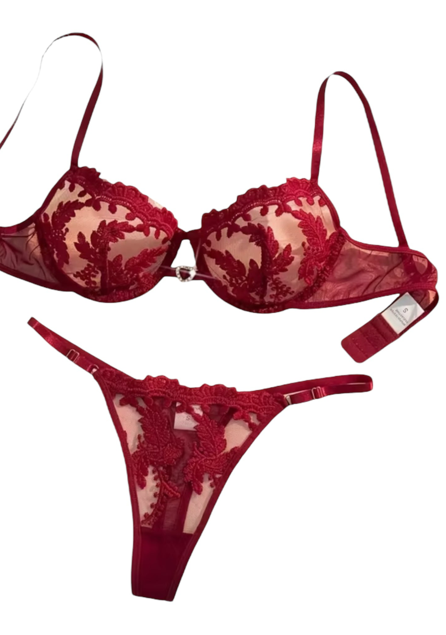 Plongez dans l’intensité de l’Élégance Carmine, un ensemble lingerie envoûtant qui allie sensualité et raffinement. Sa dentelle florale rouge passion sublime les courbes, tandis que ses détails transparents apportent une touche de mystère irrésistible